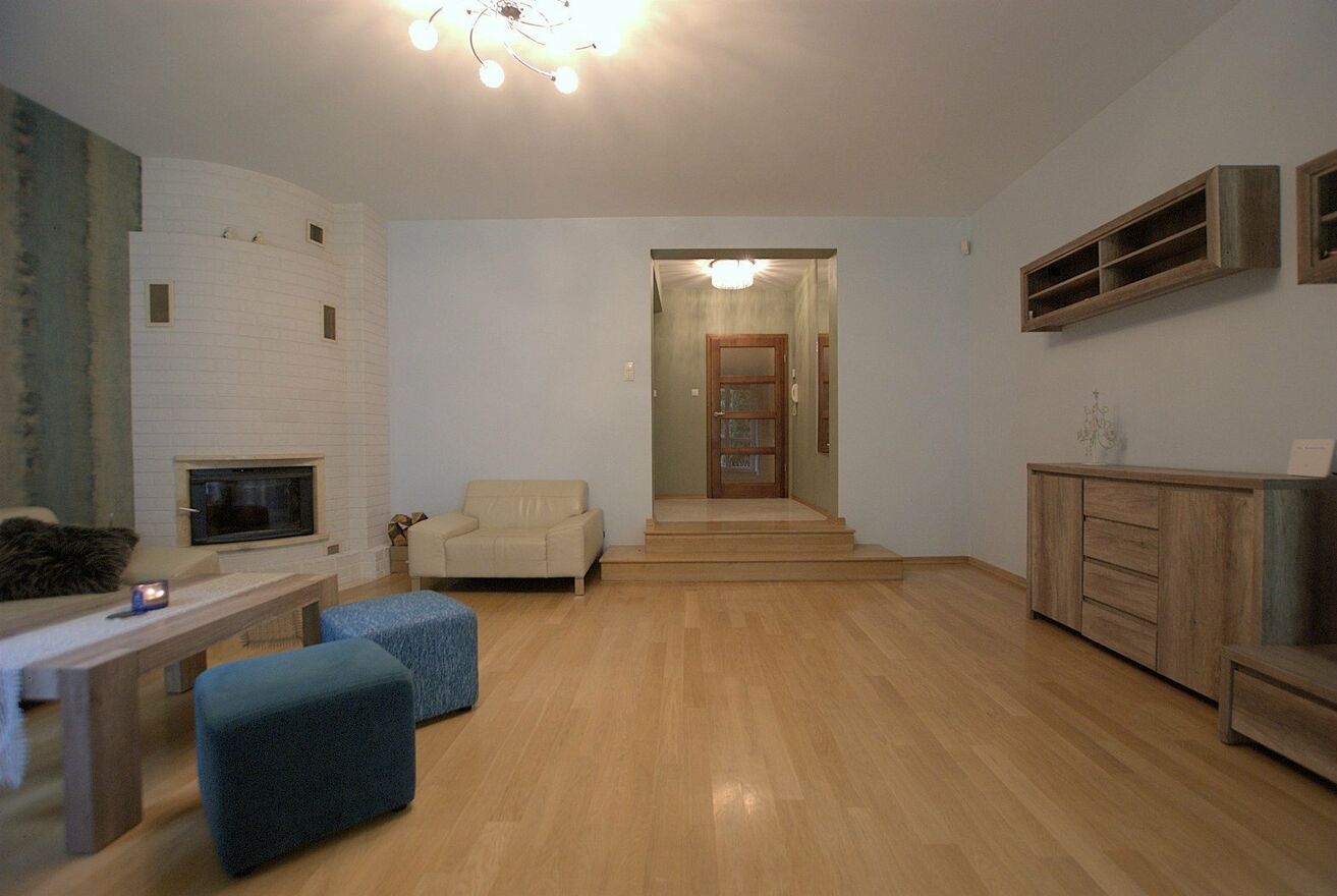 I poziom - przestronny salon z kominkiem i wyjściem na ogród, osobna widna kuchnia, WC, wiatrołap
