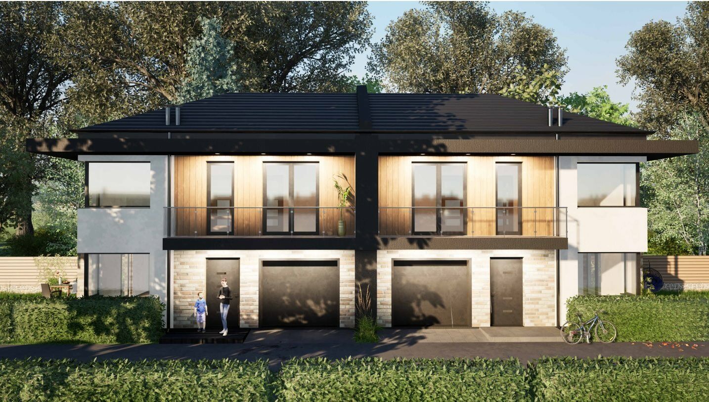 Nowoczesny kameralny dom jednorodzinny w zabudowie bliźniaczej. To tylko 2 segmenty z garażami oraz działkami i ogródkami w cenie.