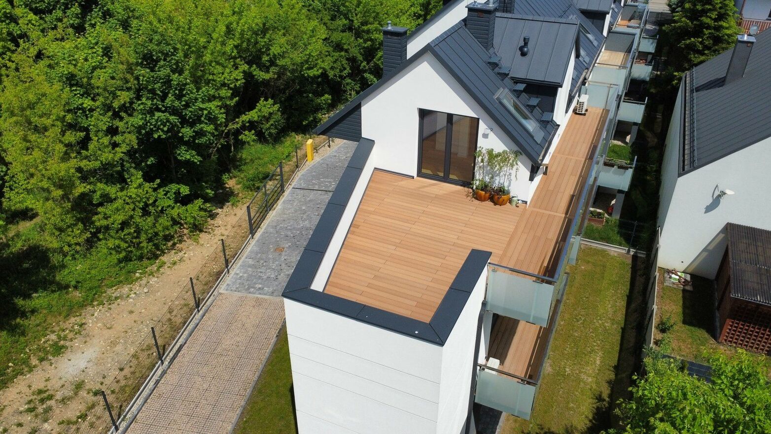 II piętro - 2 pokoje, łazienka, balkon oraz duży taras ponad 30 m2 z pięknym widokiem na okolice