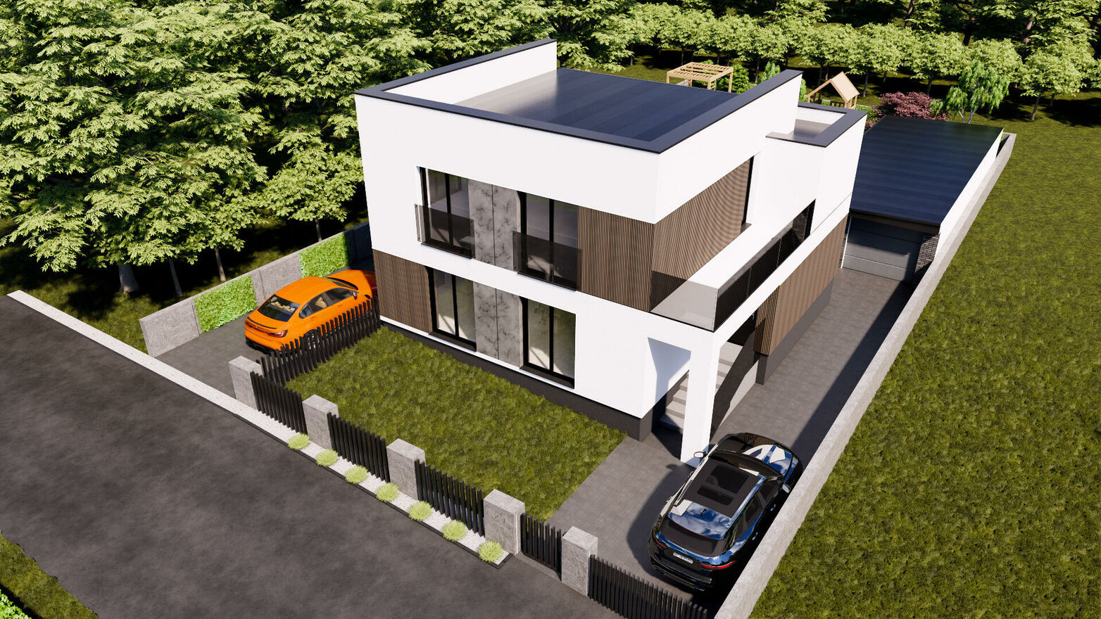 teren zagospodarowany z wykonaną elewacją,