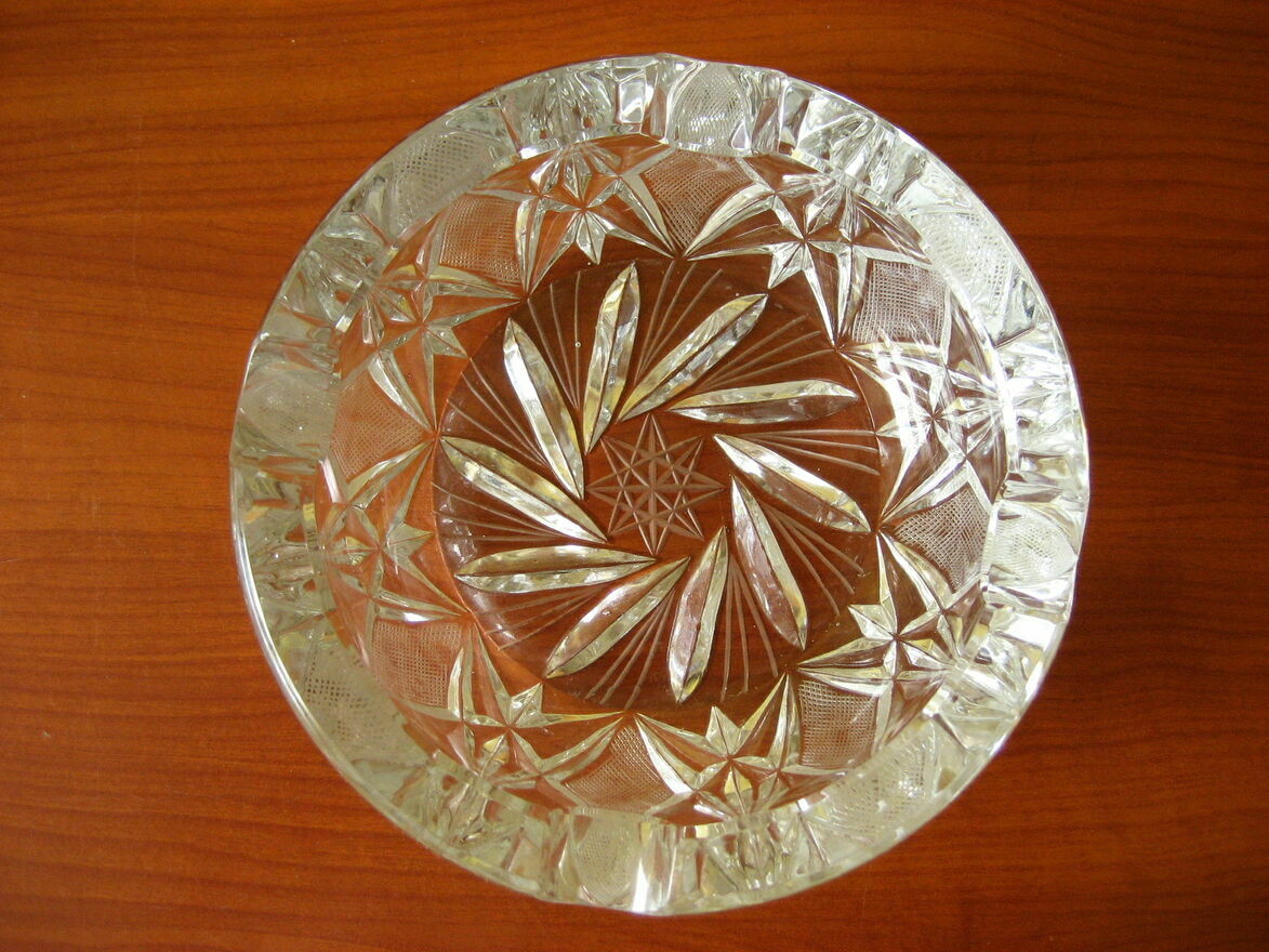 Sprzedam kryształową popielniczkę z grubego szkła, ładną, elegancką, dużą i ciężką. Lata 80'te XX wieku.Popielniczka nieużywana do palenia papierosów, stanowiła element kolekcji kryształów, była elementem dekoracyjnego wyposażenia wnętrza.