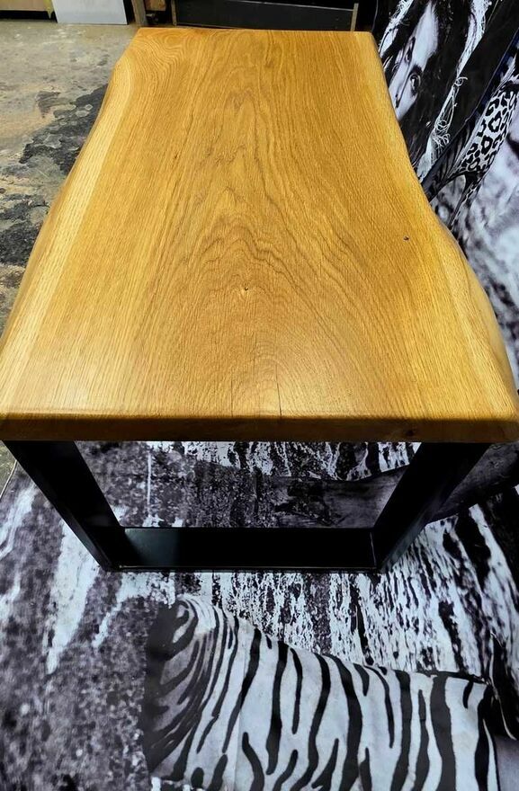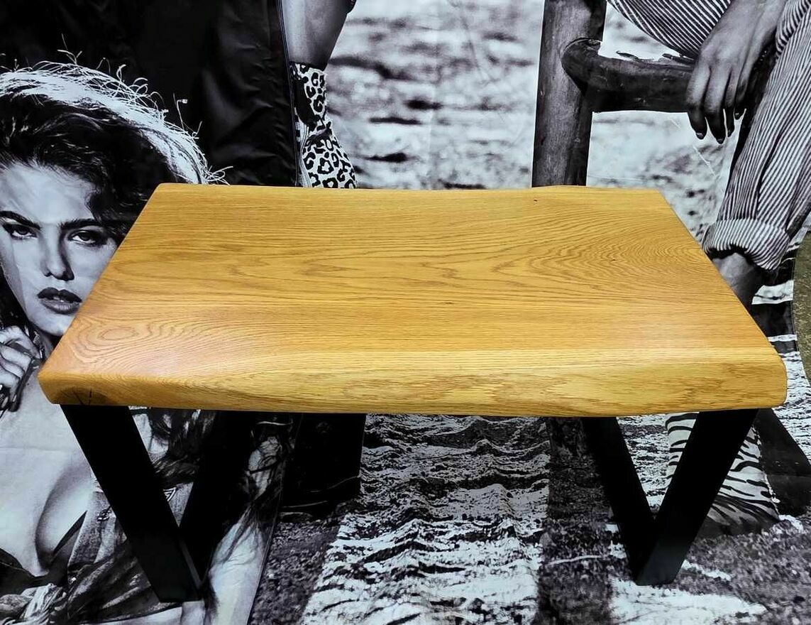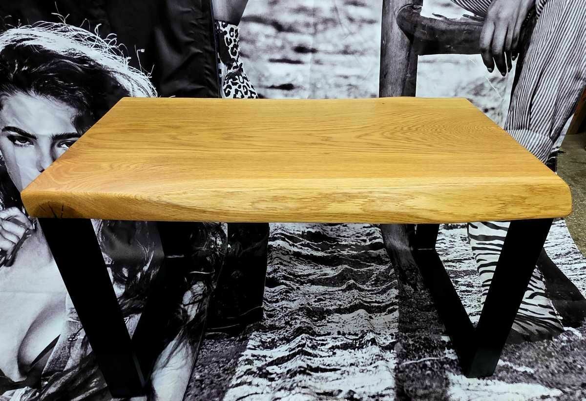Stolik kawowy wykonany z monolitu drewna dębowego wykończony olejem na jedwabisty połysk.Wymiary ok 77 x 46 cm