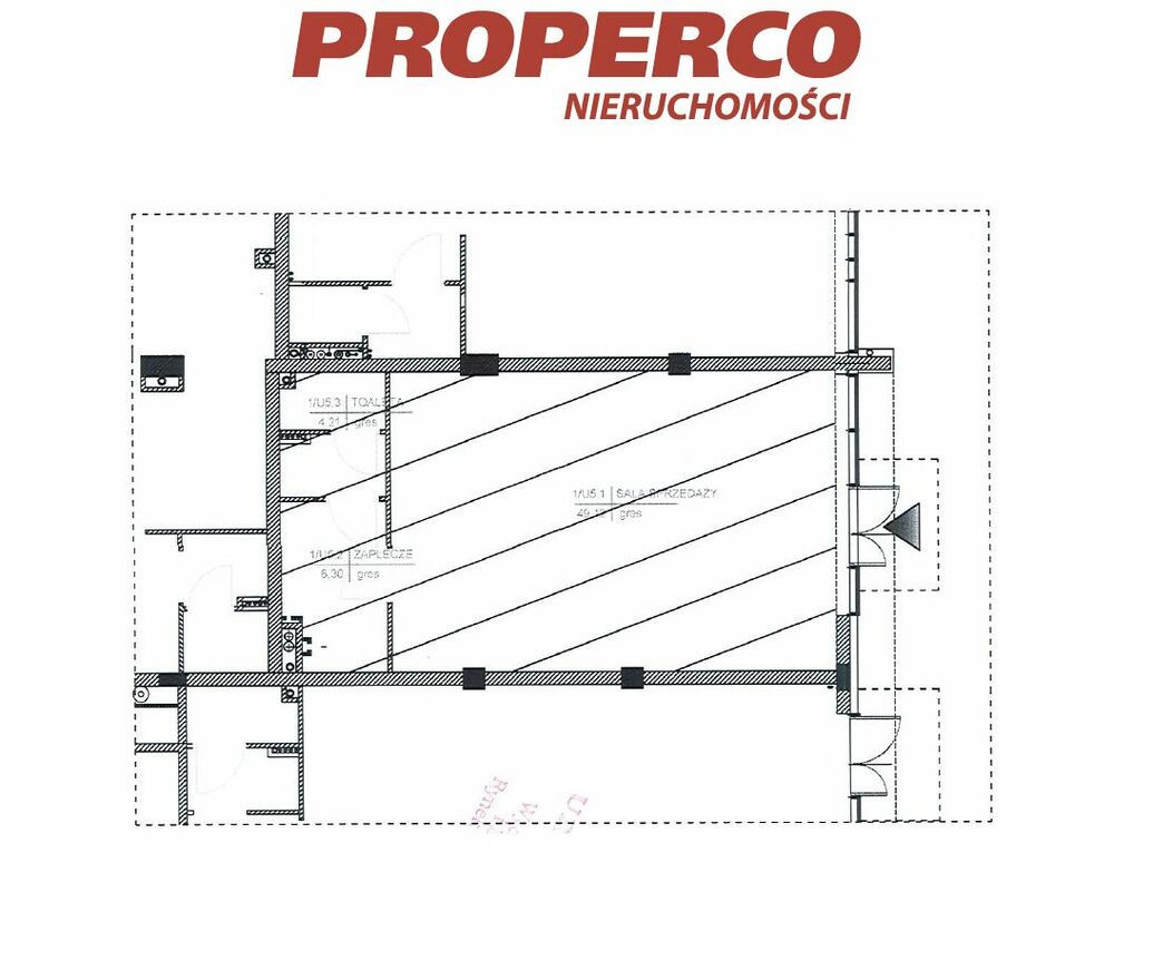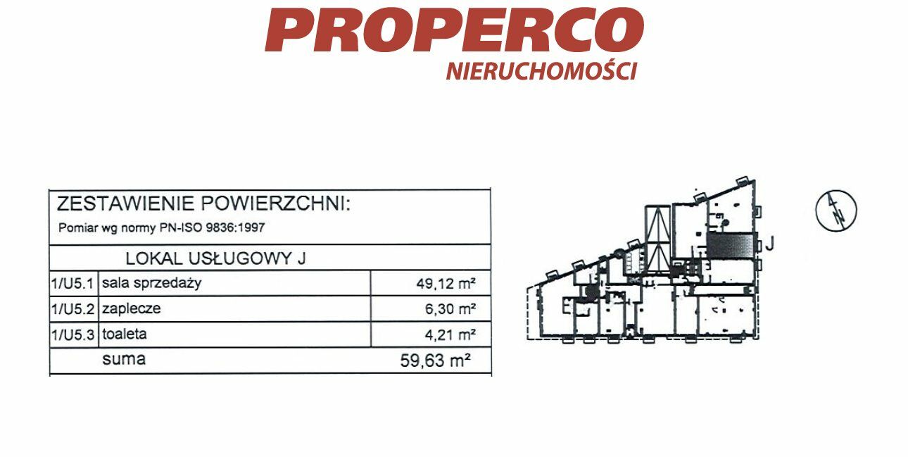- sala sprzedaży o pow. 49,12 m2,