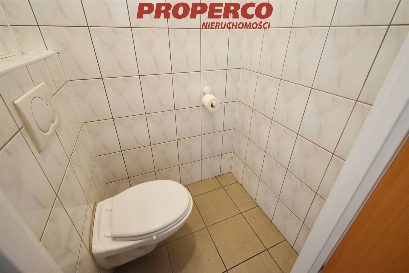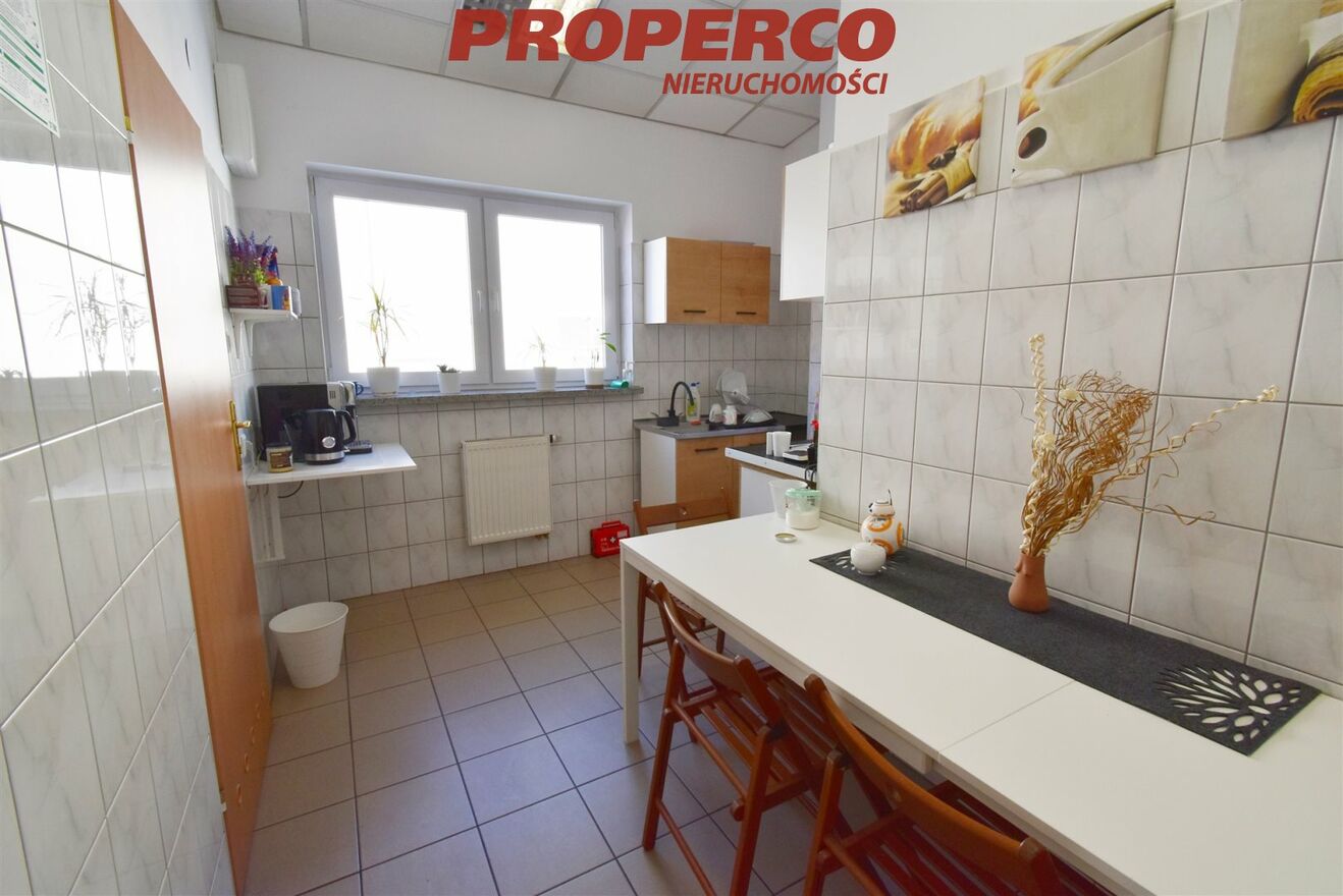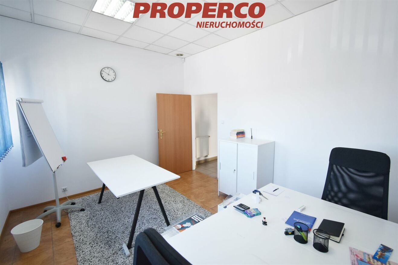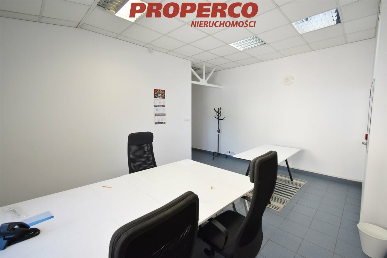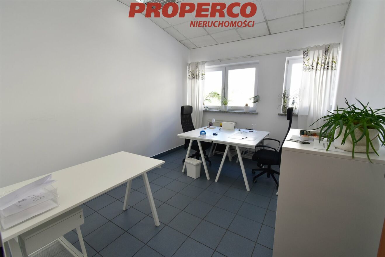 Premises with an area of 115 m², located in a two-story building on Zagnańska Street, on the outskirts of Kielce city center. The property features one entrance, a large public parking lot in front of the building, and heating and hot water provided by the municipal network. Access to the premises is via stairs. The area is fenced and monitored