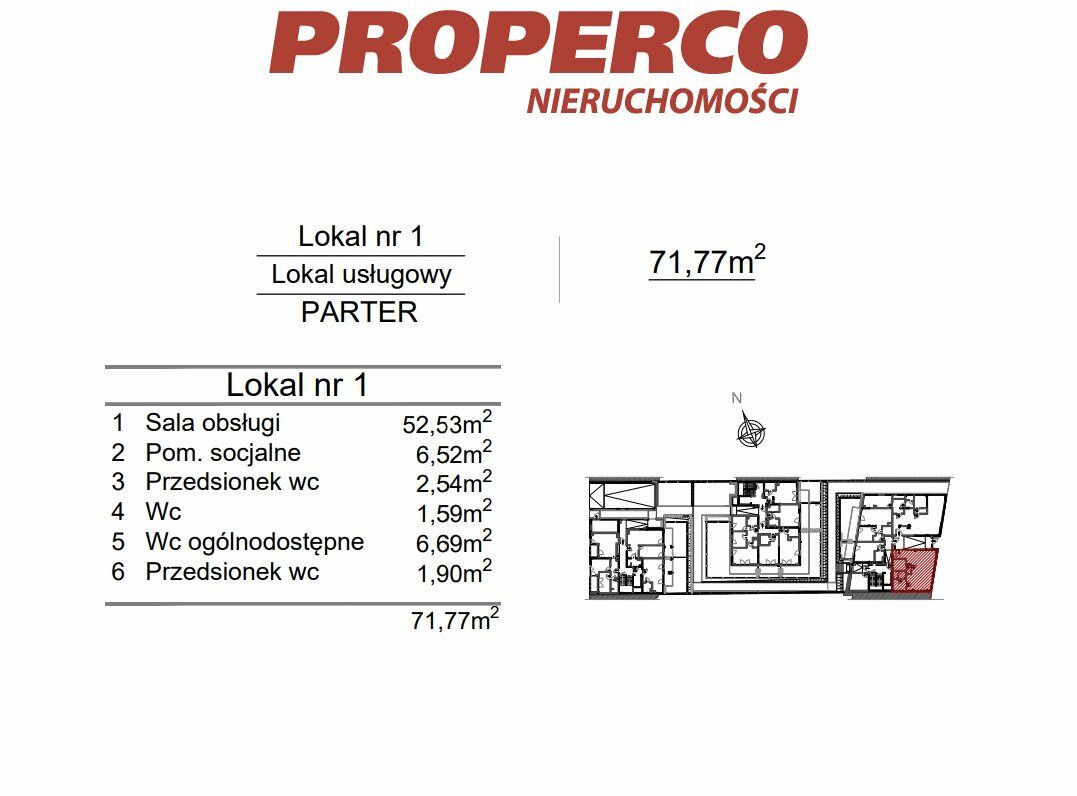 - WC ogólnodostępny (6,69 m2).