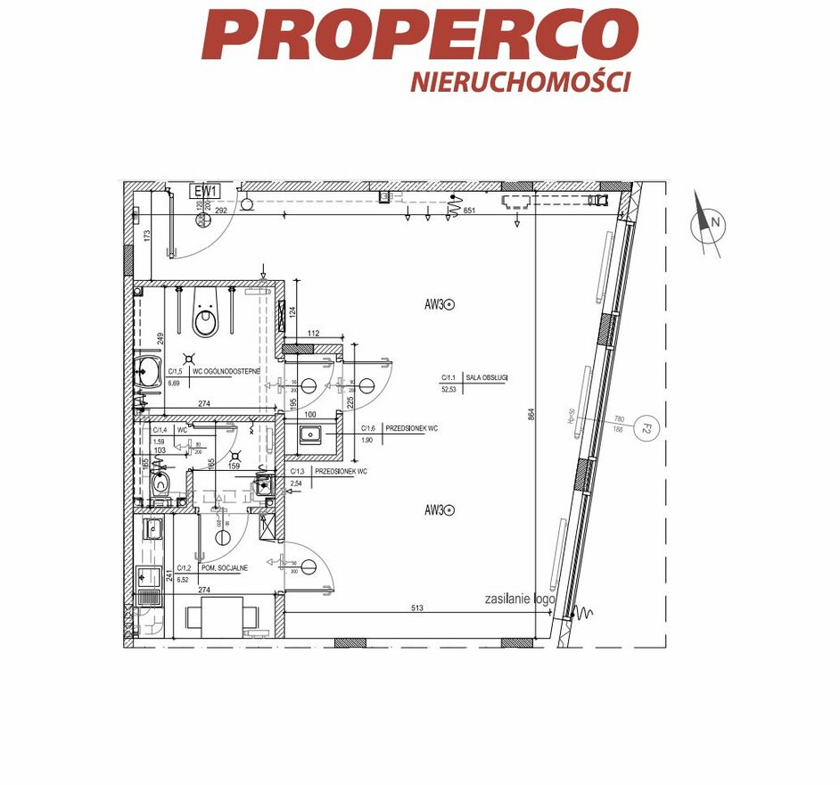- sala obsługi (52,53 m2),
