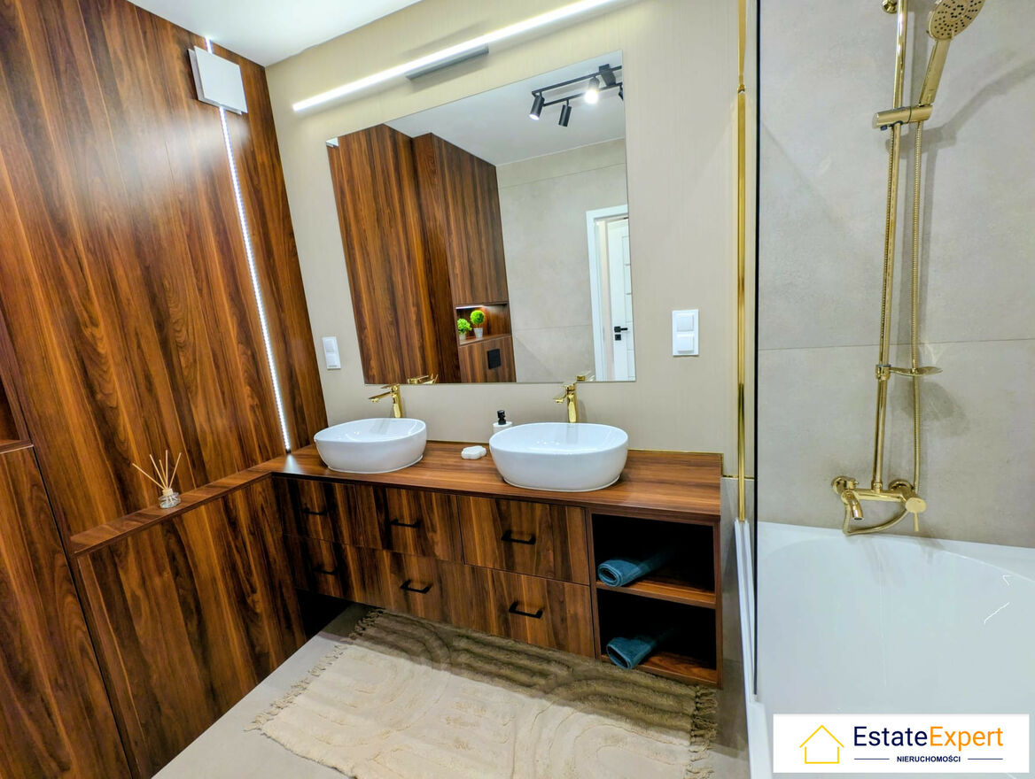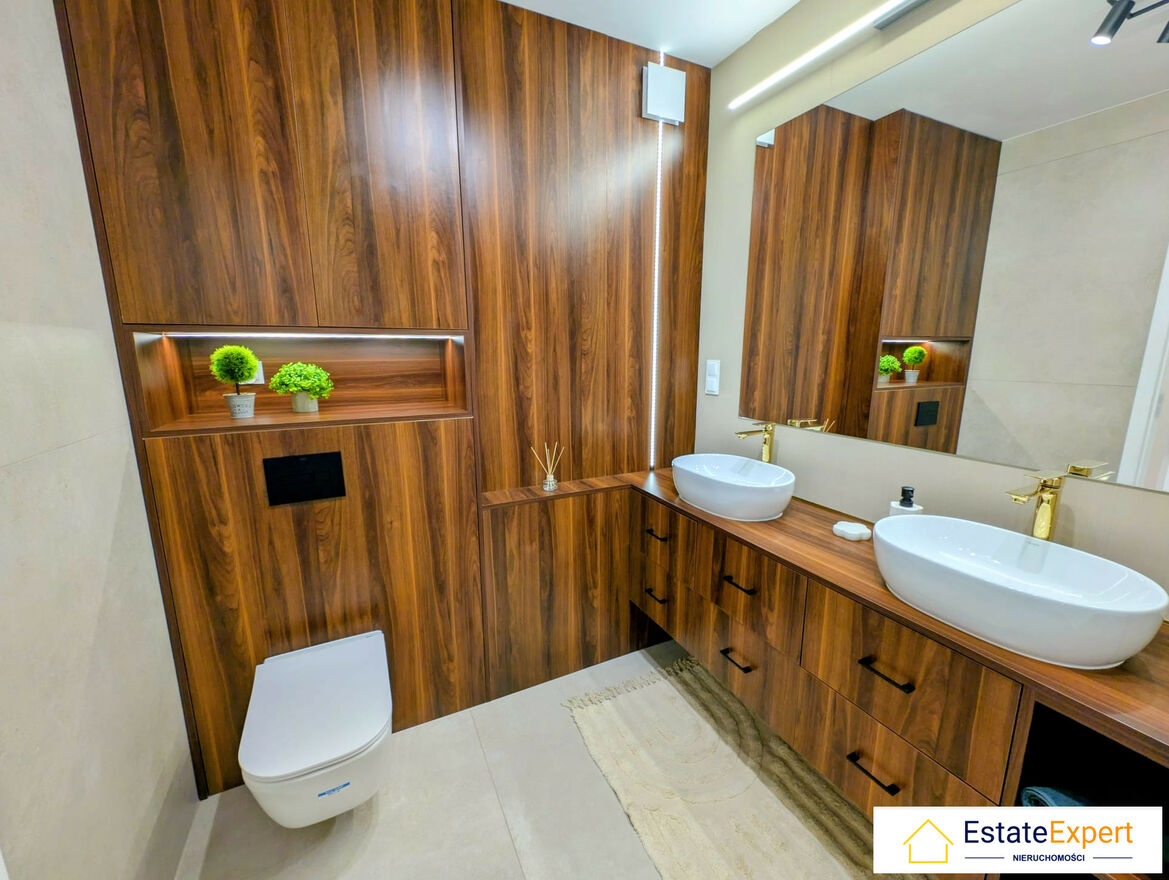 Mieszkanie wykończone "pod klucz", w bardzo wysokim standardzie – do wprowadzenia bez żadnych dodatkowych nakładów! Wnętrze zostało urządzone z dbałością o każdy detal. Meble wykonane na wymiar przez profesjonalnego stolarza – lakierowane fronty, systemy samodomykania i tip-on. Bardzo dużo szafa. Nowoczesna kuchnia z granitowym zlewem GRANITAN i sprzętami AGD renomowanych marek BEKO i Whirlpool. Wysokiej klasy drzwi, estetyczne panele podłogowe. Zabezpieczenia: drzwi / okna antywłamaniowe ,domofon / wideofon ,monitoring / ochrona ,teren zamknięty.