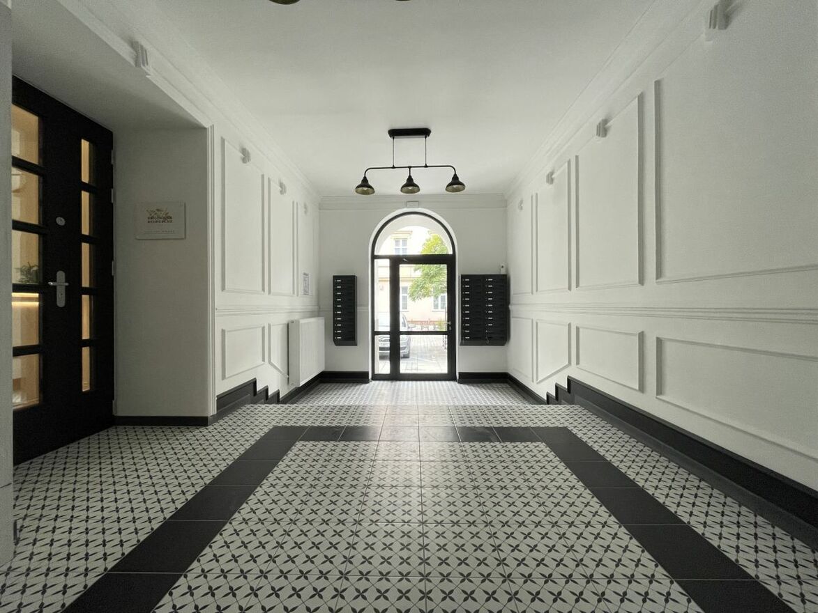 Lokal znajduje się na 1. piętrze w zabytkowej kamienicy z 1882 roku. Budynek przeszedł gruntowną renowację - zarówno wnętrza, jak i elewacja zostały odnowione z zachowaniem oryginalnego klimatu i detali. Wysokie, 3-metrowe sufity nadają wnętrzom wyjątkowy charakter. Natomiast ekspozycja południowa zapewnia świetne doświetlenie wnętrz.