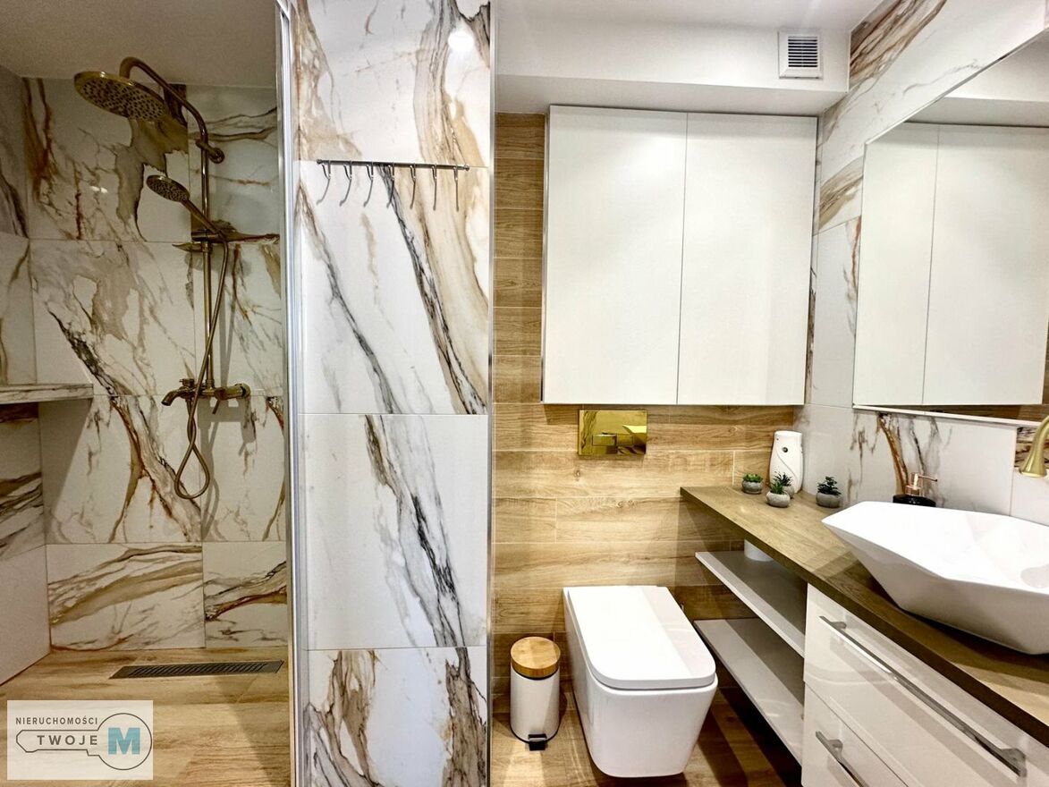 - w łazience duży prysznic linowy, umywalka, ogrzewanie podłogowe, WC