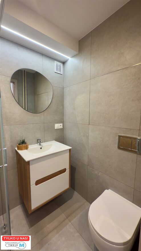 W mieszkaniu znajduje się, duży salon z aneksem kuchennym w której została wykonana wysokiej klasy zabudowa meblowa przez stolarza. Zainstalowano wszelkie niezbędne sprzęty AGD znanych marek tj: o kap, p iekarnik elektryczny, p łyta indukcyjna, l odówko-zamrażarka oraz z mywarka. Łazienka w mieszkaniu została zaprojektowana w nowoczesnym stylu. Zainstalowano w niej wysokiej klasy armaturę oraz energooszczędne i modne oświetlenie LED. W przedpokoju znajduje się wysokiej klasy szafa z lustrem w zabudowie wykonana przez stolarza na wymiar. Do wykończenia mieszkania zostały użyte wysokogatunkowe materiały w nowoczesnym stylu: świetnej jakości farby w jasnych kolorach, panele o wysokiej klasie oraz energooszczędne i modne oświetlenie.