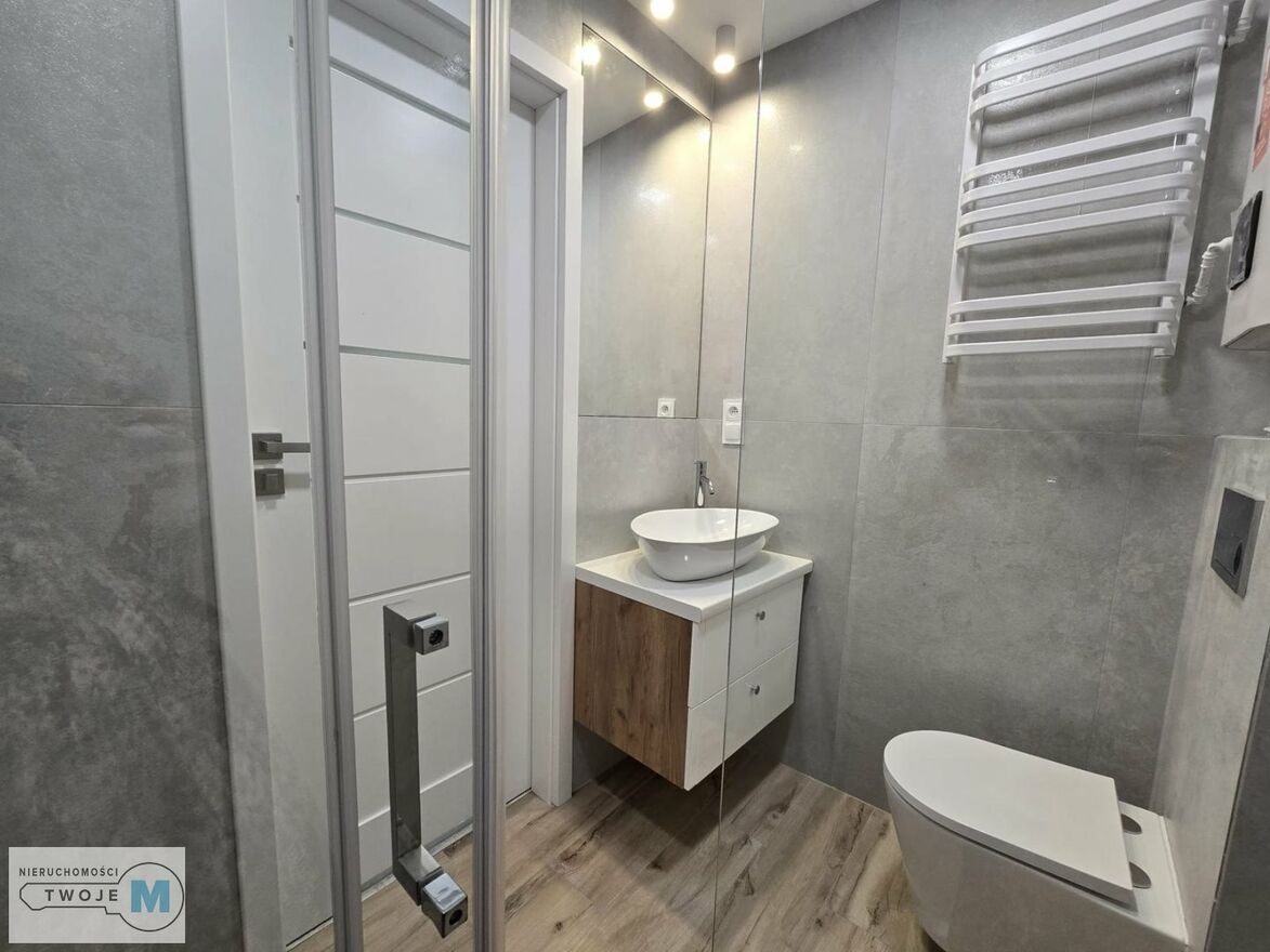 W mieszkaniu znajduje się funkcjonalny salon z aneksem kuchennym, w którym z ainstalowano sprzęty AGD znanych marek tj.: okap, piekarnik elektryczny. Łazienka w mieszkaniu została zaprojektowana w nowoczesnym stylu. Zamontowano w niej wysokiej klasy armaturę oraz energooszczędne i modne oświetlenie LED. W przedpokoju znajdują się szafa oraz lustro dekoracyjne, siedzisko z wieszakami na okrycia wierzchnie. Do wykończenia mieszkania zostały użyte wysokogatunkowe materiały, świetnej jakości farby w jasnych kolorach, panele o wysokiej klasie oraz energooszczędne oświetlenie.