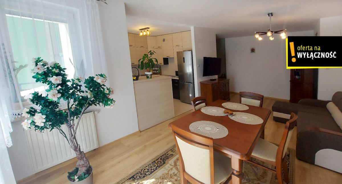 Mieszkanie jest komfortowo umeblowane łącznie z meblami kuchennymi w zabudowie i sprzętem agd: (lodówka, zmywarka, płyta indukcyjna, piekarnik).