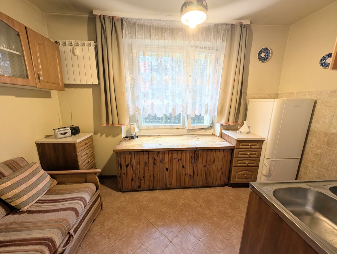 Prezentujemy przestronne mieszkanie składające się z dwóch pokoi, widnej kuchni, łazienki i przedpokoju. Położone jest na wysokim parterze niskiego, kameralnego 2 piętrowego bloku. Wnętrza zdobi dębowy parkiet, który dodaje elegancji i ciepła. Mieszkania wymaga remontu, ale dla mniej wymagających może nadawać się od razu do zamieszkania, jest czyste i zadbane.Niewątpliwym atutem jest duża loggia z możliwością relaksu w absolutnej ciszy balkon jest odsunięty od ruchu drogowego, a jednokierunkowa uliczka osiedlowa generuje minimalny ruch samochodowy. Na loggii znajduje się również zamykany schowek.