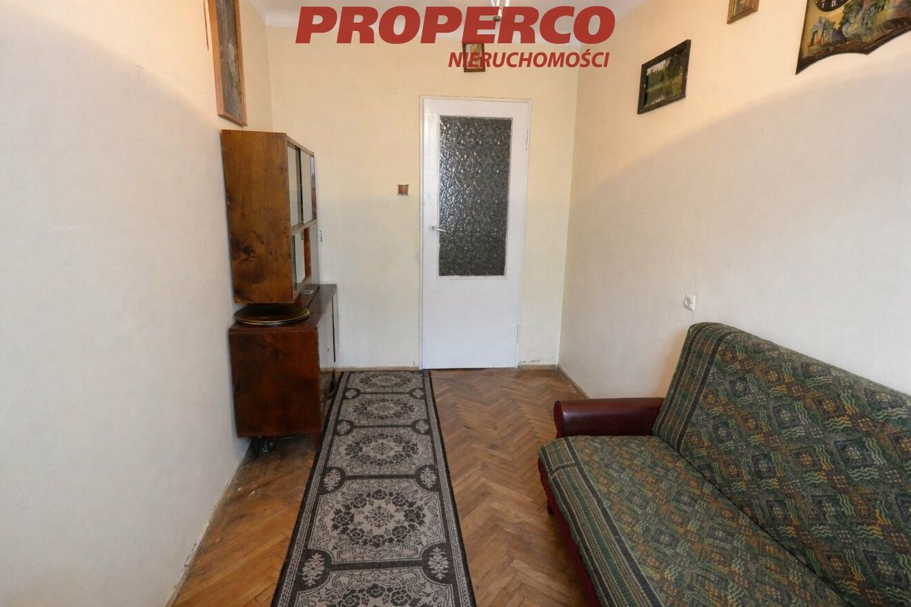 The apartment is single-sided, east-facing, and requires a complete renovation, offering great potential for individual arrangement. There is a possibility of removing the wall separating the room from the kitchen and converting the space into a living room with a kitchenette. The owner uses a basement storage unit located in the underground level of the building. The building has undergone thermal modernization; wooden window frames; parquet flooring in the rooms and hallway.