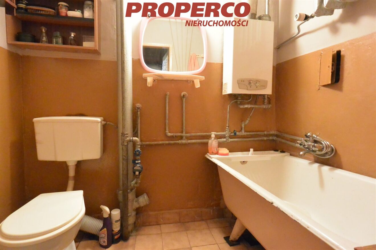 Mieszkanie jednostronne, z wystawą wschodnią, w stanie do generalnego remontu, z dużym potencjałem do własnej aranżacji. Istnieje możliwość wyburzenia ścianki oddzielającej pokój od kuchni i przerobienia na salon z aneksem kuchennym. Właściciel korzysta z piwnicy, zlokalizowanej w podziemiach budynku. Budynek po termomodernizacji, stolarka okienna drewniana, na podłogach w pokojach i przedpokoju parkiet.