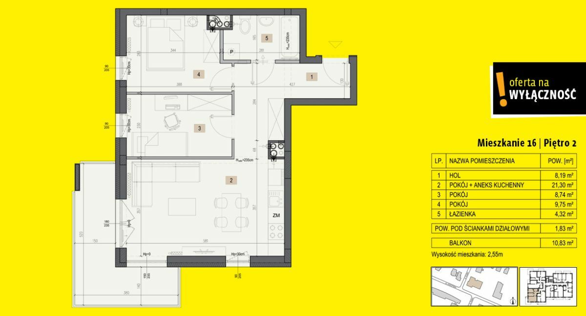 Cena: od 529000 zł do 716000 zł Powierzchnia : od 46 m2 do 62 m2