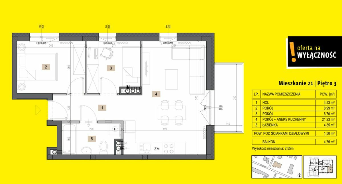 - Liczba pokoi:3 pokoje
