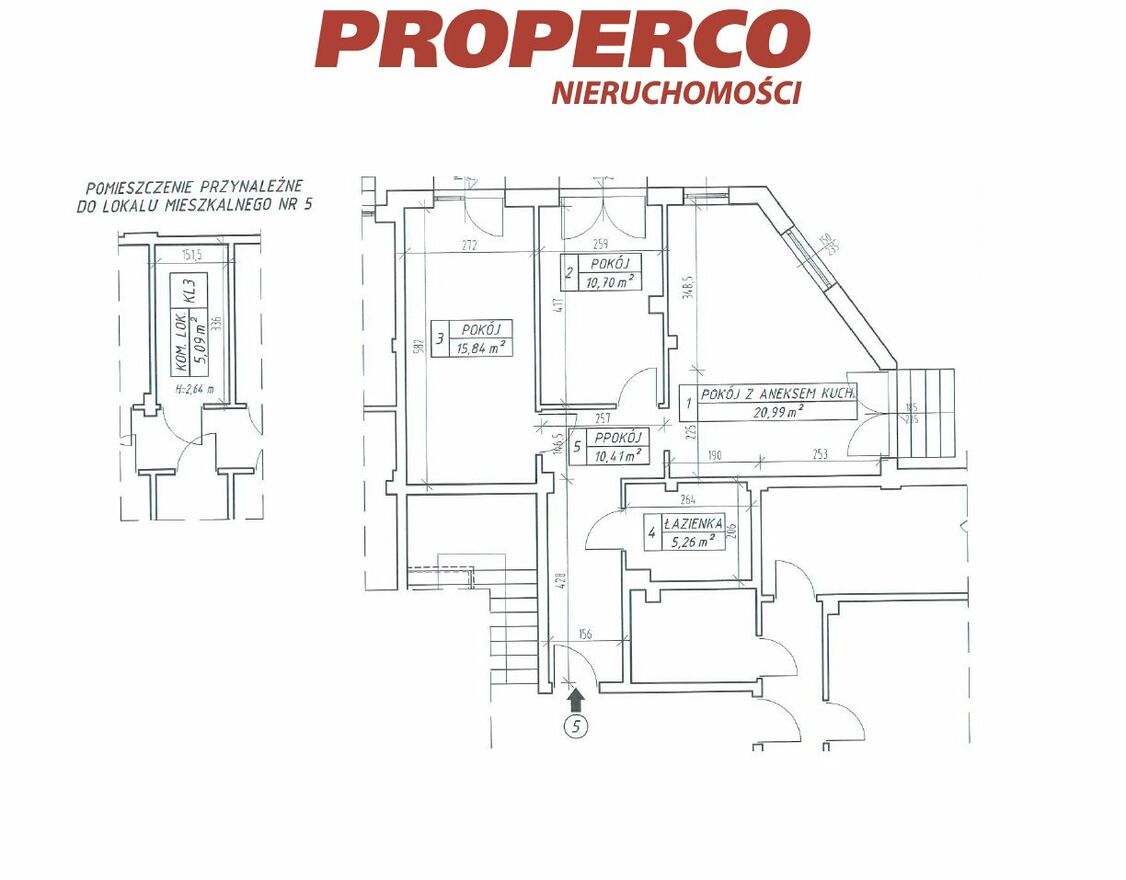Do mieszkania przynależy komórka lokatorska o pow. 5,09 m2.