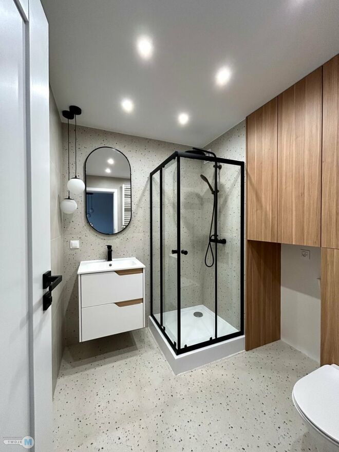 Mieszkanie po remoncie generalnym. Zakres prac remontowych obejmował m.in. pełną wymianę instalacji elektrycznej wraz z licznikiem trójfazowym (możliwość podłączenia dowolnej płyty indukcyjnej), hydraulicznej (w budynku również wymienione piony), wykonanie gładzi na ścianach, wylewek i położenie nowej podłogi, wymiana grzejników.