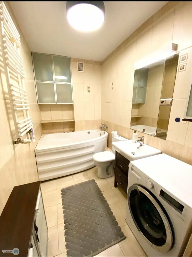 Kuchnia wymiar (sprzęt bosch: kuchenka, piekarnik, lodówka, zmywarka). W sypialni zabudowa szafowa z lustrem. W łazience wanna z hydromasażem oraz zainstalowanym systemem wentylacji mechanicznej. W całym mieszkaniu oświetlenie led. Niski czynsz. K omórka lokatorska o powierzchni 2,2 m2 cena 15000 złotych. Możliwość zakupu miejsca postojowe w garażu podziemnym cena 50000 złotych,