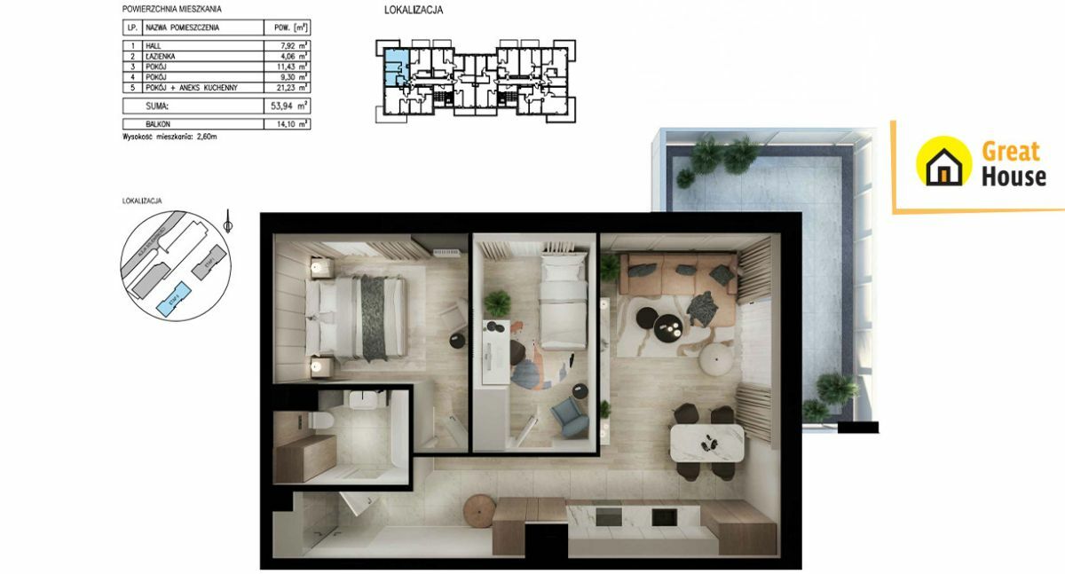 - a dodatkowo Balkon - 14,10 m² (przestronny, idealny do wypoczynku)