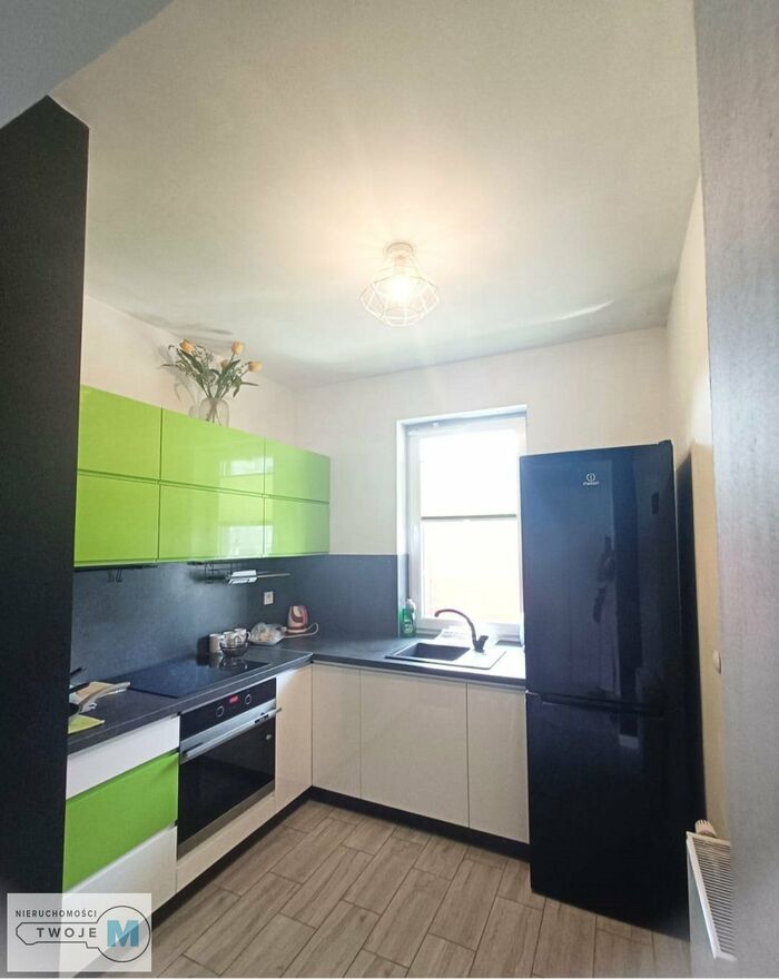 widna kuchnia (lodówka, zabudowa meblowa, płyta indukcyjna, piekarnik)