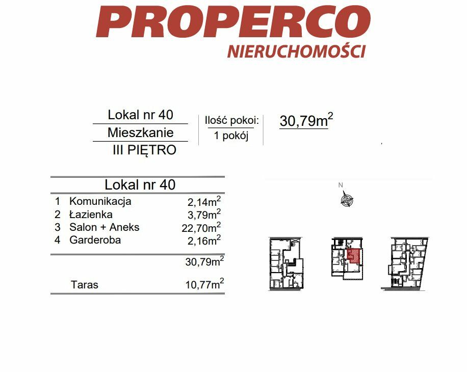 Do lokalu przynależy taras o pow. 10,77 m2.