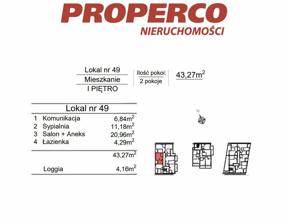 Do lokalu przynależy loggia o pow. 4,16 m2.
