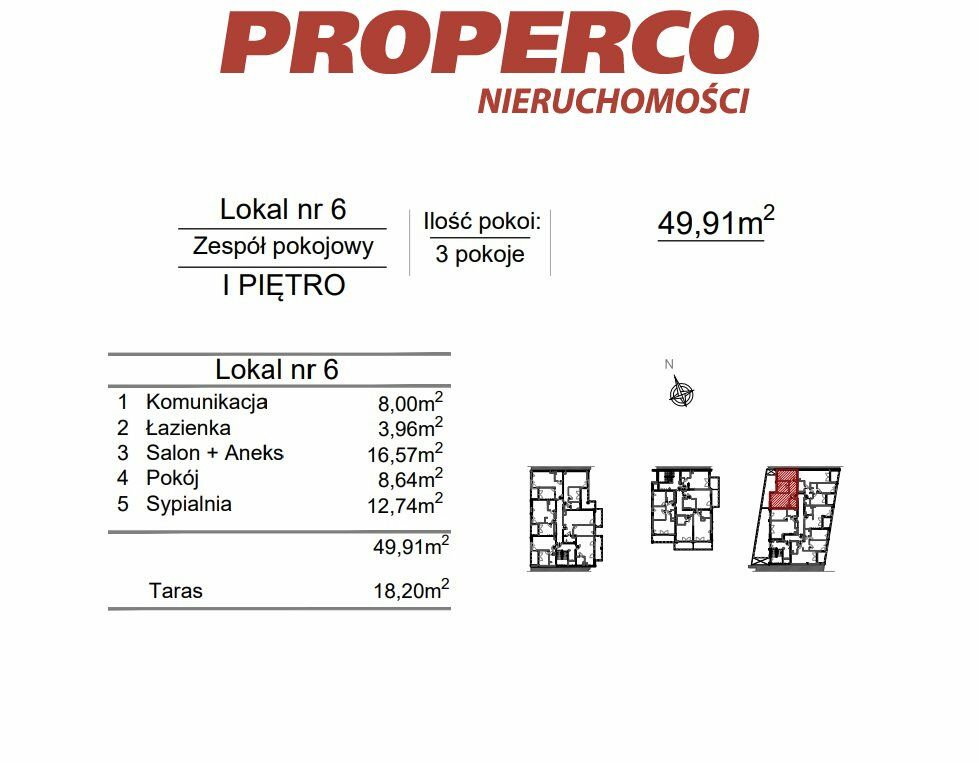 Do lokalu przynależy taras o pow. 18,20 m2.