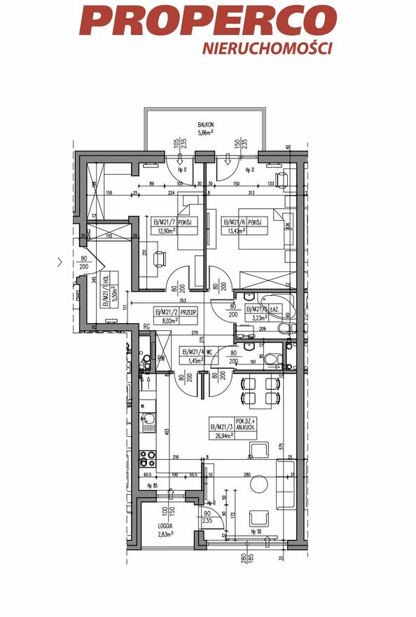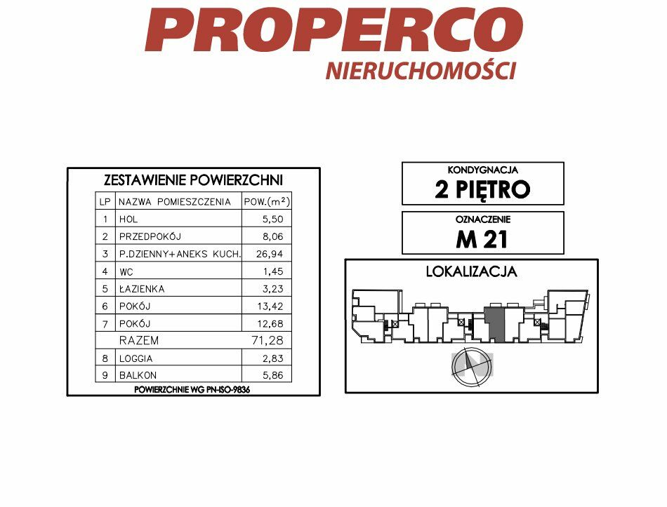 Do lokalu przynależy loggia o pow. 2,83 m2 oraz balkon o pow. 5,86 m2.