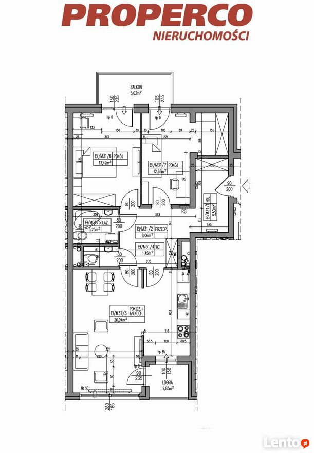 Do lokalu przynależy loggia o pow. 2,83 m2 oraz balkon o pow. 5,86 m2.