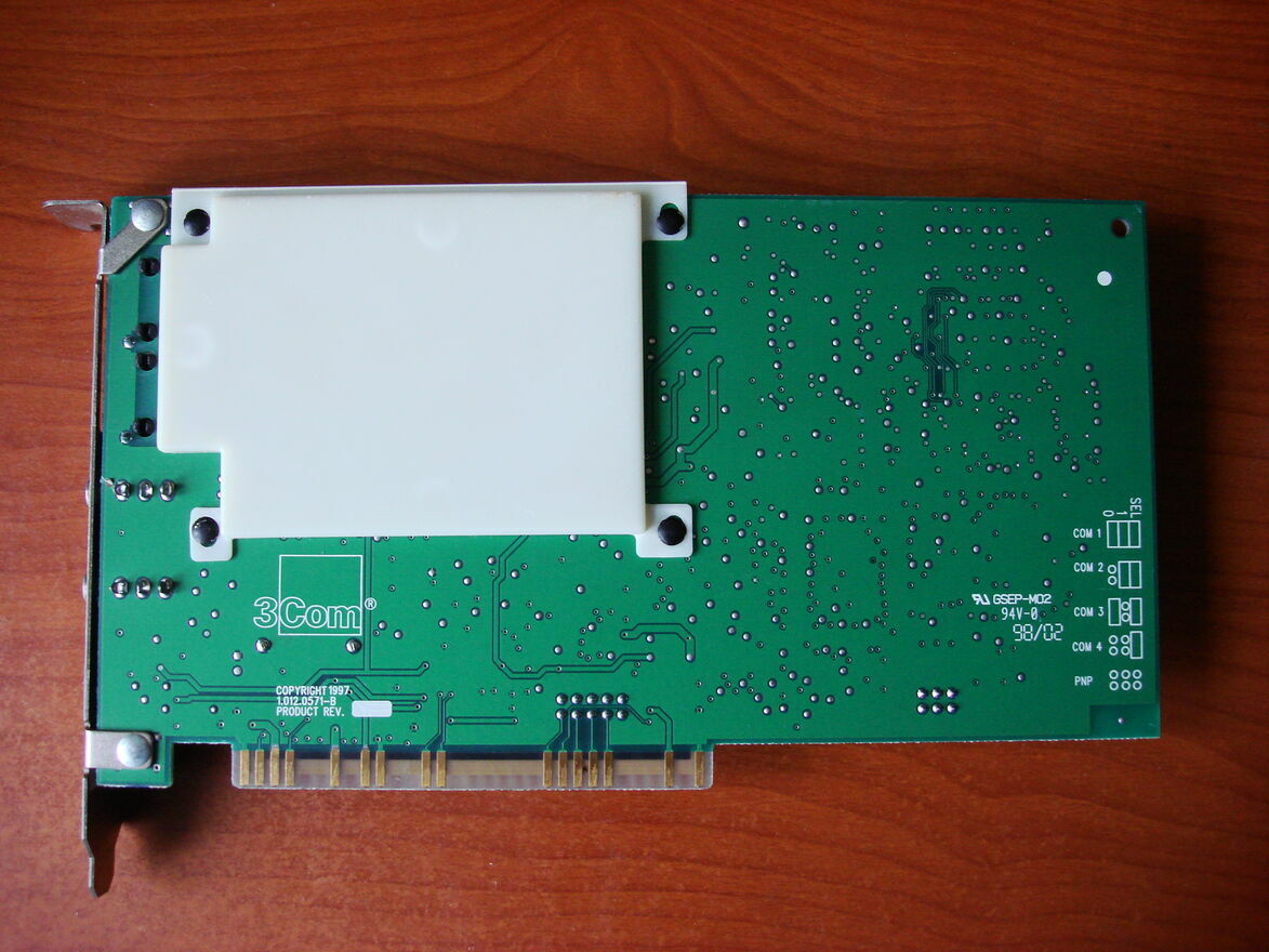 Sprzedam muzealny modem telefoniczny 3COM na szynę ISAStan fizyczny bardzo dobry, nie widać uszkodzonych elementów, jak i brakujących