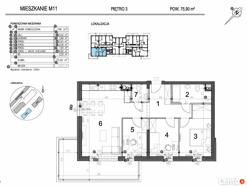 EII-M11Oferujemy do sprzedaży mieszkanie o pow. 75,90 m2