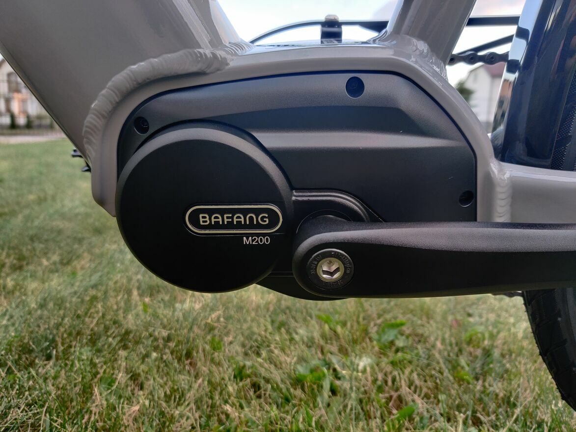 Silnik elektryczny Bafang M200 o mocy 250W - zapewnia płynne wspomaganie podczas jazdy, ułatwia podjazdy i dłuższe trasy.