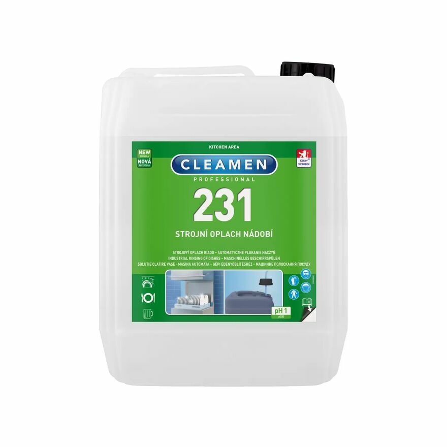 Poznaj siłę czystości z pomocą płynu do zmywarek CLEAMEN 231. Jest to wysoce skoncentrowany środek do nabłyszczania i polerowania naczyń przeznaczony do profesjonalnych zmywarek i szkła z automatycznym dozowaniem. Jego formuła, skutecznie zniweluje ślady osadów mineralnych i usuwa resztki brudu z umytych naczyń, nadając im lśniący wygląd. Stosowany w drugiej fazie mycia zapewnia doskonałe efekty, kiedy łączony z myjącem Cleamen 230 lub Cleamen 232 ACTIVE.Cechy produktu: