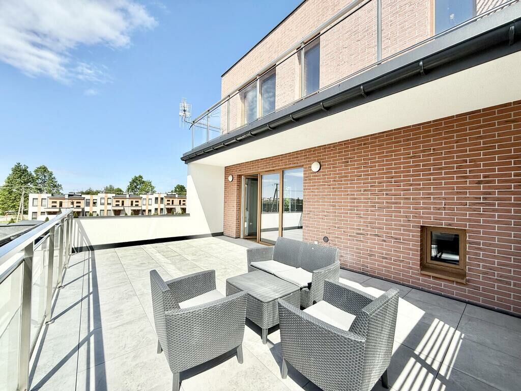 Kuchnia w aneksie z salonem i wyjściem na 30-metrowy taras
