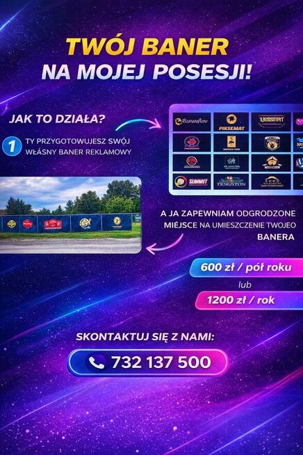 Dam możliwość powieszenia baneru z reklamową w Radlinie 26:008 koło kamer.Wiecej informacji droga telefoniczną.